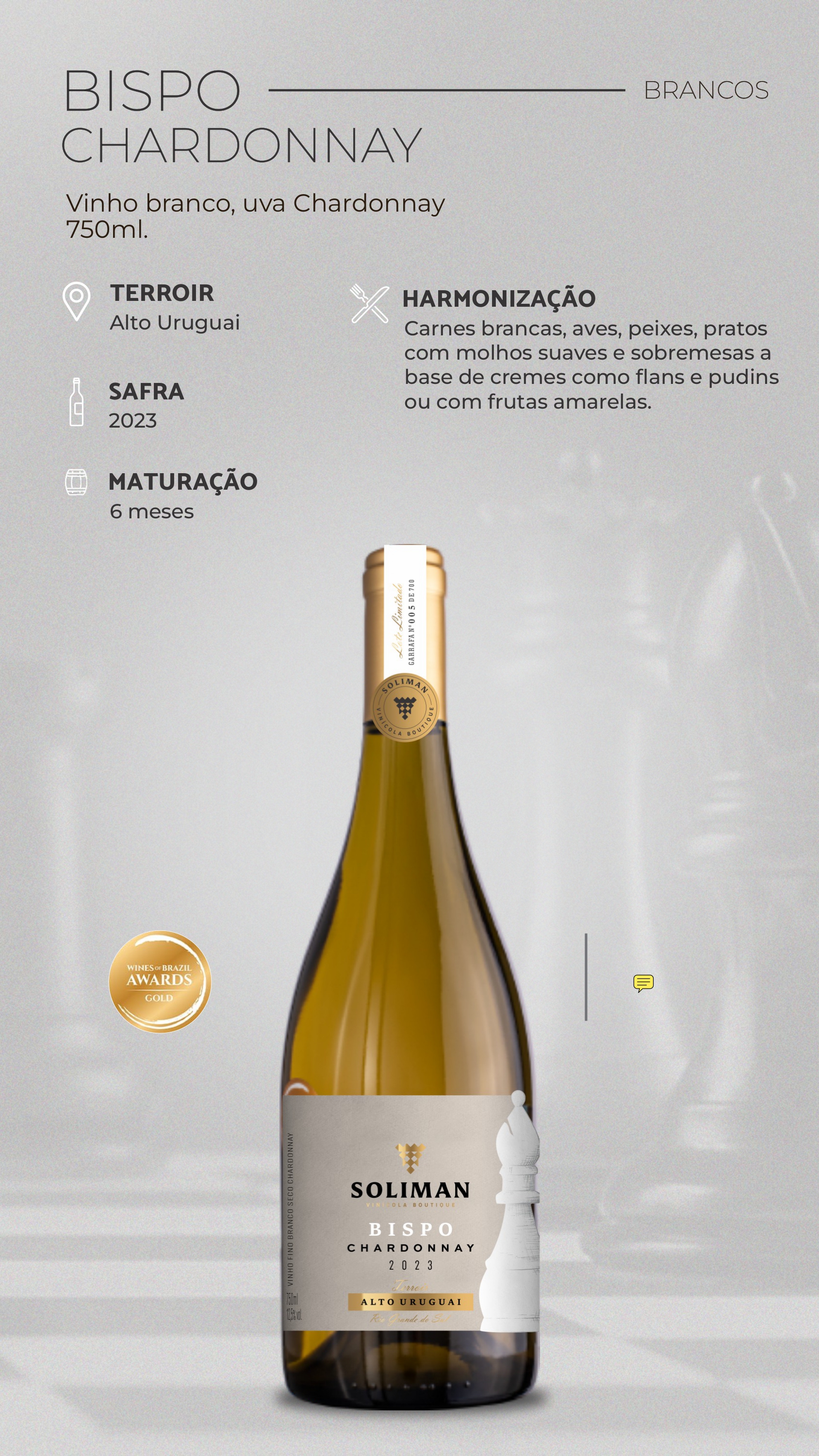 Nosso Bispo Chardonnay, nascido nos terroirs privilegiados do Alto Uruguai RS, é a celebração da rainha das uvas brancas e certamente um dos melhores Chardonnay Brasileiros.