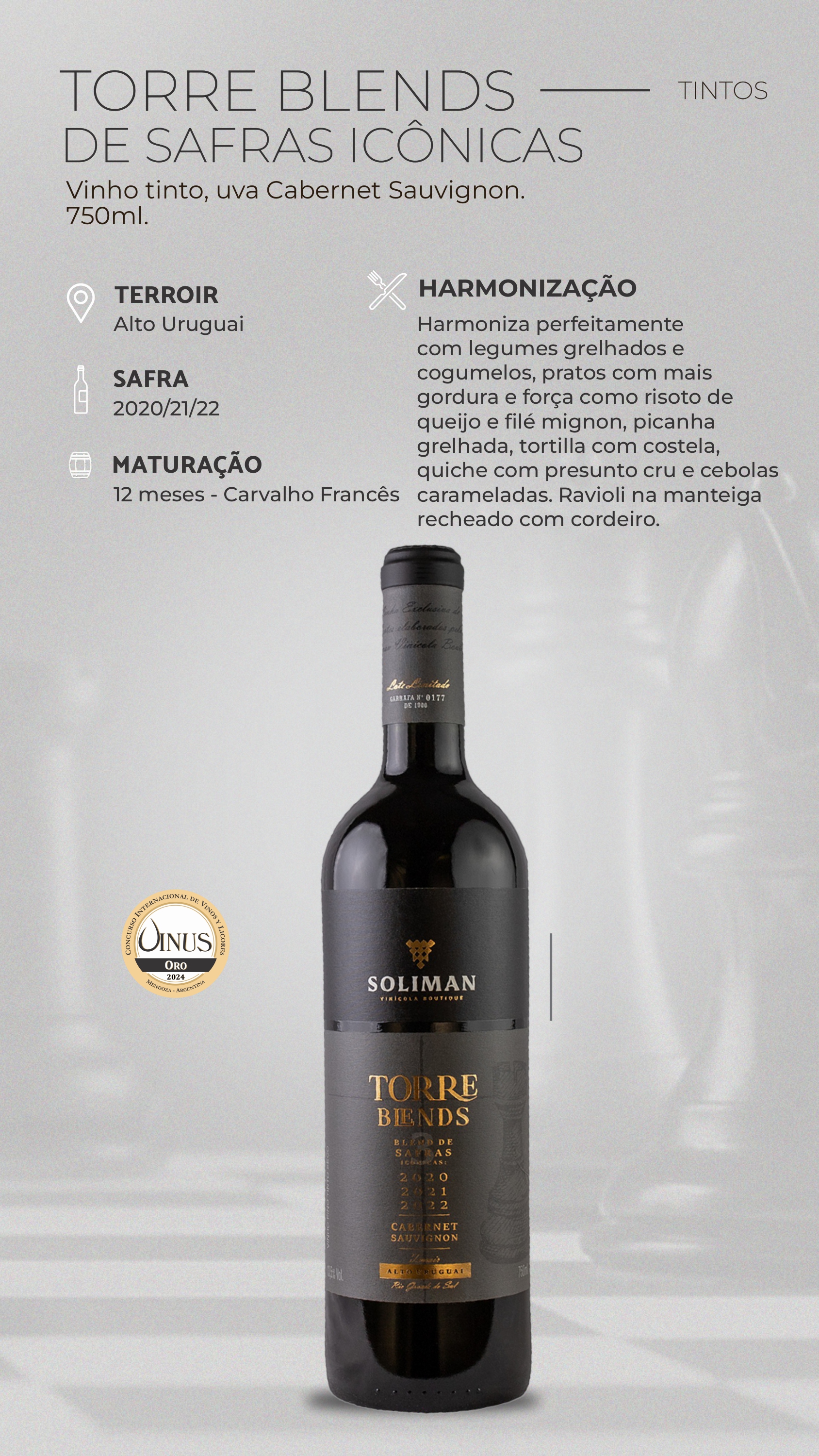 Ideal para acompanhar momentos especiais e pratos sofisticados, o Soliman Torre Blends de Castas Icônicas é a escolha perfeita para quem aprecia a arte da enogastronomia.